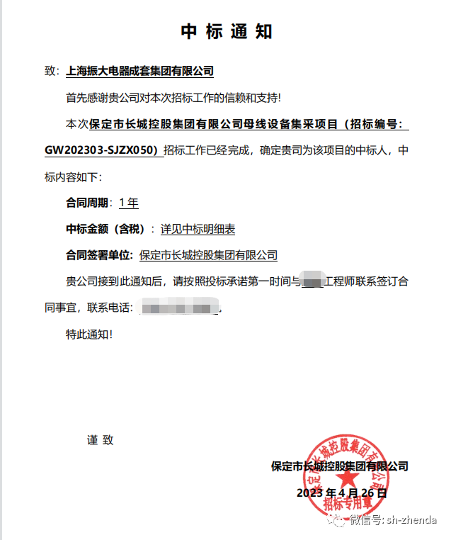 近期,長(zhǎng)城控股集團(tuán)新年度母線設(shè)備戰(zhàn)略集采招標(biāo)工作完成,振大集團(tuán)憑借專業(yè)的行業(yè)實(shí)力、強(qiáng)大的技術(shù)支持以及豐富的項(xiàng)目經(jīng)驗(yàn),從激烈的競(jìng)爭(zhēng)中脫穎而出,一舉中標(biāo)!